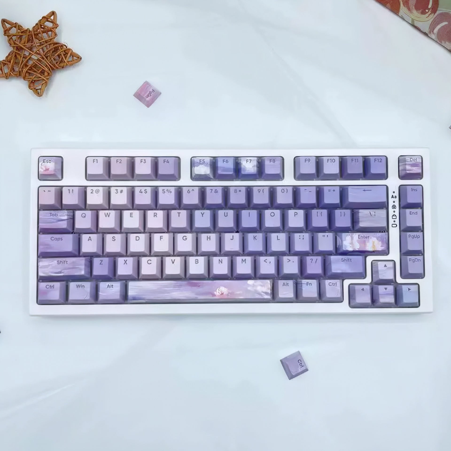 Pre-order Monet Water Lilies Keycaps Set for Mechanical Keyboard, Cherry Profile Side-Engraved Impressionist Art Pastel Purple Keycap
