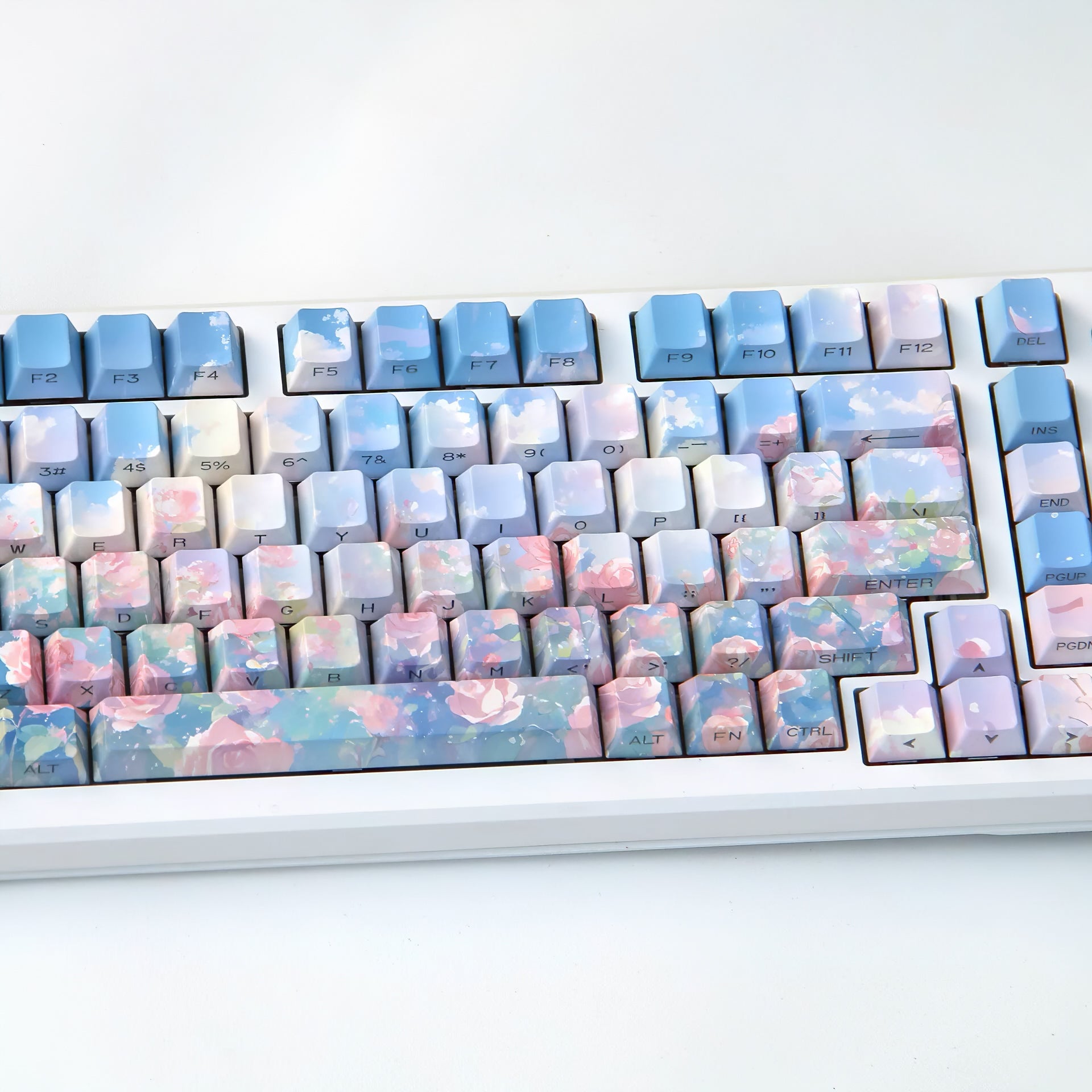 Pre-order Rose Garden Keycaps Set for Mechanical Keyboard, Cherry Profile Side-Engraved Pastel Floral Theme Cherry Keycaps
